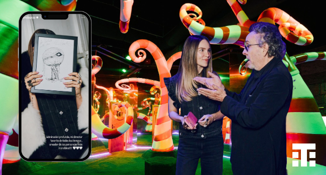 Visiblemente emocionada, compartió en sus redes sociales fotos y videos del evento, donde se le ve junto al creador de cintas como «El joven manos de tijera» y «El extraño mundo de Jack». También presumió un dibujo autografiado por Burton y le dedicó un mensaje de admiración, “Gracias Tim Burton por hacerme parte de este día tan especial”.