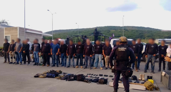 En el sitio donde fueron asegurados, las autoridades localizaron un espacio de entrenamiento con características de adiestramiento tipo militar. Durante la intervención se decomisó una pistola, 19 réplicas de armas de fuego, cuchillos, navajas, equipo táctico, de radiocomunicación y un camión de pasajeros.