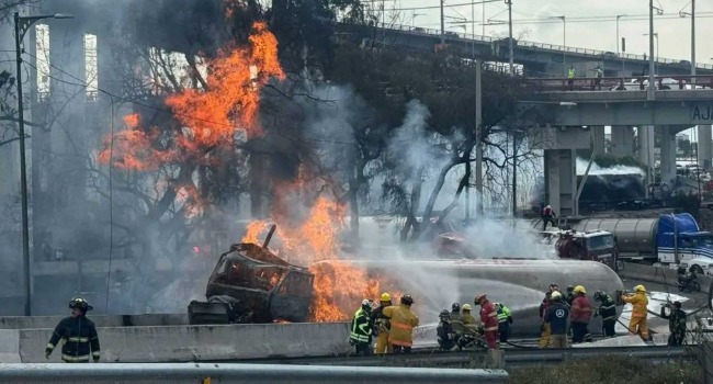 Una fuerte explosión seguida de un incendio de grandes proporciones se registró esta tarde en el Puente de la Concordia, en la Calzada Ignacio Zaragoza, en la alcaldía Iztapalapa, Ciudad de México, luego de que una pipa de transporte de gas licuado de petróleo (LP) volcara en el lugar.