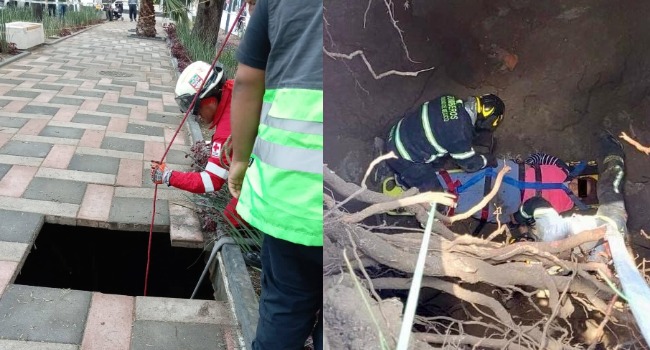 En una serie de imágenes compartidas por el director general del Heroico Cuerpo de Bomberos, Juan Manuel Pérez Cova, se observa cómo la mujer se encuentra en el fondo del socavón, del que se desconocen sus dimensiones, en medio de raíces de árboles, mientras es colocada por los elementos de emergencia en una camilla.