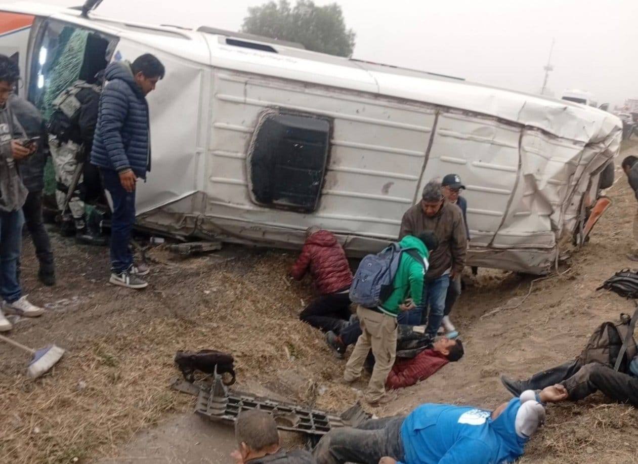 Una unidad de transporte público de la Ruta San Juan Zitlaltepec volcó en el Circuito Exterior Mexiquense (CEM), a la altura del municipio de Jaltenco, la cual dejó al menos 20 personas lesionadas, entre ellas, el conductor.