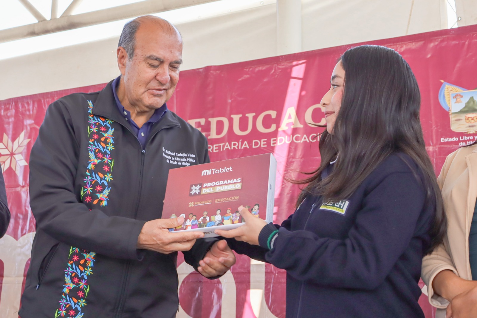 El secretario de Educación Pública de Hidalgo, Natividad Castrejón Valdez, encabezó la entrega de 2 mil 925 tabletas electrónicas como parte del Programa de Transformación Educativa “Mi Tablet”, en beneficio de estudiantes del Colegio de Bachilleres del Estado de Hidalgo (Cobaeh), ubicados en los municipios de Tepeapulco, Tolcayuca, Ixmiquilpan, Huejutla, Tianguistengo y Tlanchinol.