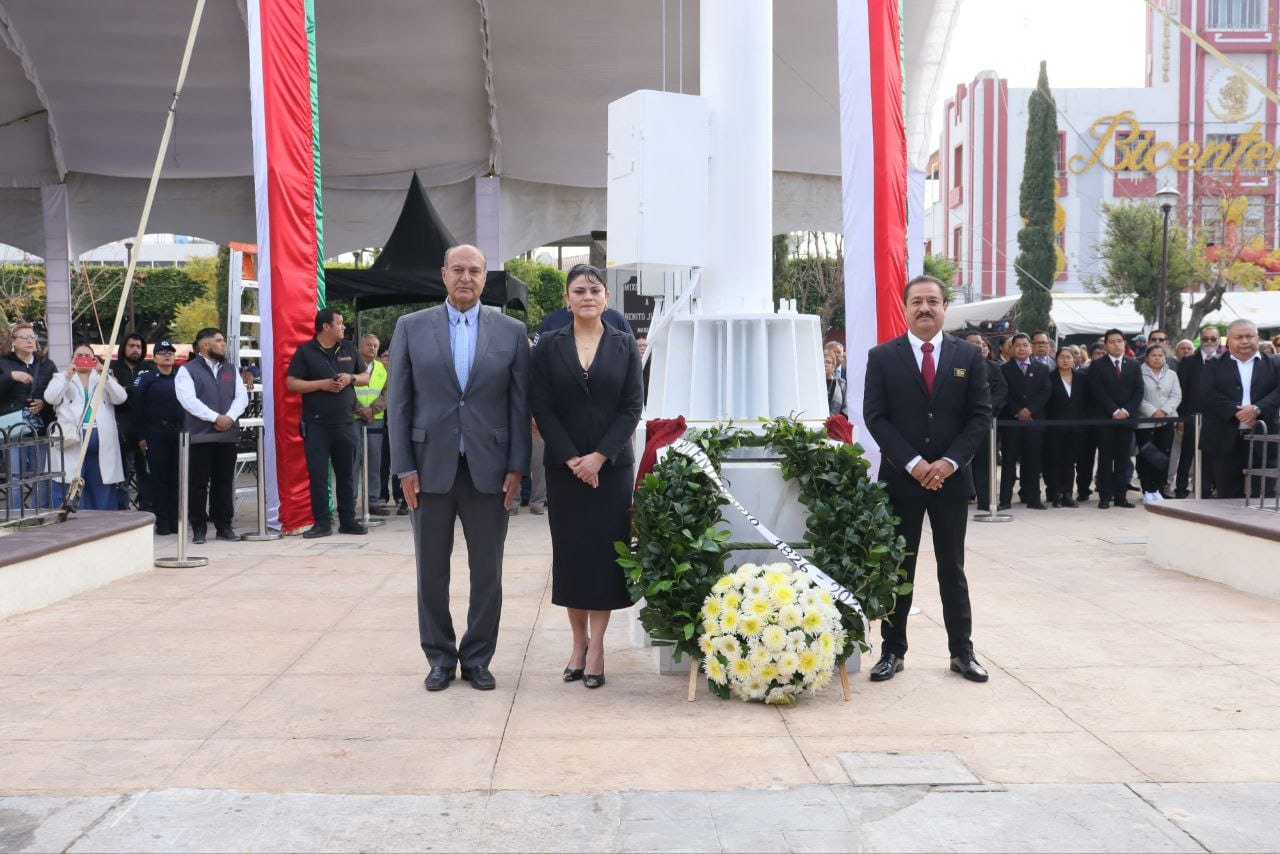 Como parte de las actividades conmemorativas, autoridades estatales y municipales participaron en el izamiento de bandera, guardia de honor, develación de placa, entreg y desfile cívico.