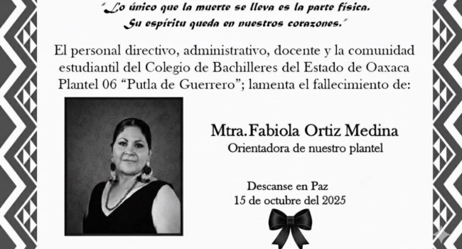 Fabiola Ortiz Medina, maestra y psicóloga, fue asesinada a balazos por uno de sus estudiantes frente al Colegio de Bachilleres 6, en el municipio de Putla Villa de Guerrero, en Oaxaca, el pasado miércoles 15 de octubre. La principal línea de investigación apunta a un desacuerdo por una mala calificación.