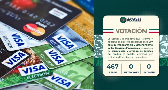 Con 467 votos a favor, la Cámara de Diputados aprobó la reforma para prohibir la práctica de emitir tarjetas de crédito o débito sin consentimiento expreso, así como evitar que las instituciones financieras generen cobros por anualidades, comisiones u otros conceptos asociados a productos no solicitados.