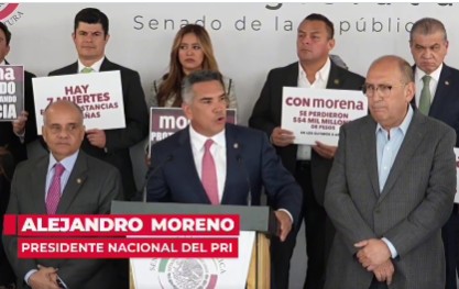 “Alito” Moreno sostuvo que desde 2018, cuando AMLO llegó a la Presidencia de México, diseñaron un entramado no sólo para robarse el dinero del pueblo de México, sino para sellar el pacto con el crimen organizado, y este desfalco va más allá de 550 mil millones de pesos al erario.