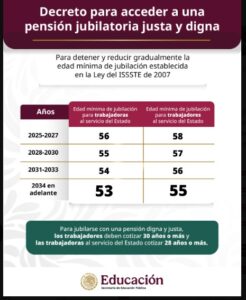 Esta medida, firmada por la presidenta Claudia Sheinbaum, establece una reducción progresiva en la edad de jubilación, que será definitiva en 2034.