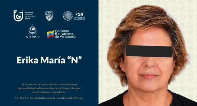 La Fiscalía General de Justicia de la Ciudad de México (Fiscalía CDMX) informa que, en coordinación con autoridades de la República Bolivariana de Venezuela, fue detenida Erika María… pic.twitter.com/3TDW5dZGDT