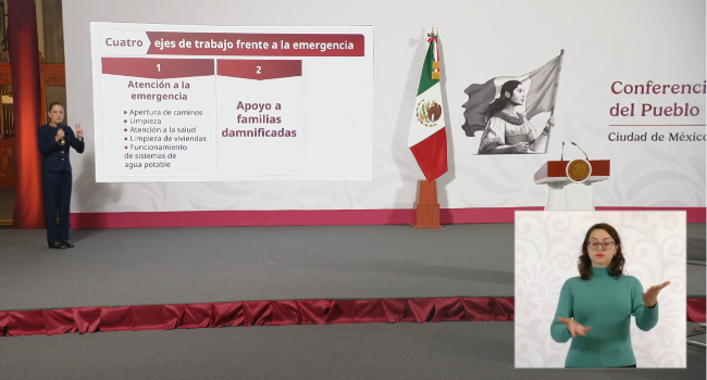 Claudia Sheinbaum Pardo anunció este lunes el Plan Integral de Apoyo a los Afectados por las lluvias, que contempla la entrega directa de 20 mil pesos a las familias damnificadas en los estados de Veracruz, Puebla, Querétaro, San Luis Potosí e Hidalgo, como primer apoyo del Gobierno de México frente a la emergencia.
