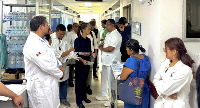 Este lunes, la mandataria visitó el Hospital General de Zona No. 2 del IMSS en Salina Cruz y la Clínica Hospital Tehuantepec del ISSSTE.