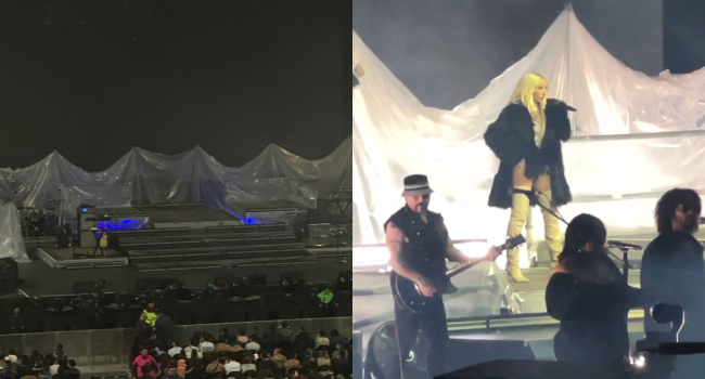 A pesar de la lluvia en la Ciudad de México, miles de asistentes llegaron al recinto, que terminó por llenarse minutos antes de que iniciara el show con una hora de retraso. Sobre el escenario, una escenografía sencilla, compuesta por pantallas y una estructura básica, acompañó a la artista, lo que generó comentarios sobre una producción limitada frente al costo de los boletos.