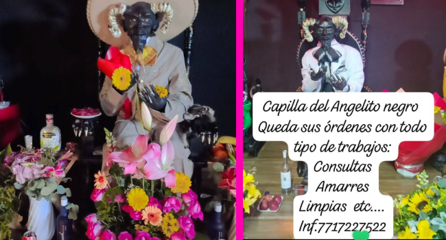 En la calle Valle de la Luz, en la colonia La Loma se ubica la Capilla del Angelito Negro 666; a pesar de que se tiene que llegar  por un camino de terracería, el centro satánico era concurrido, hasta hace unos días, porque rendían culto a la santa muerte y al ángel negro.